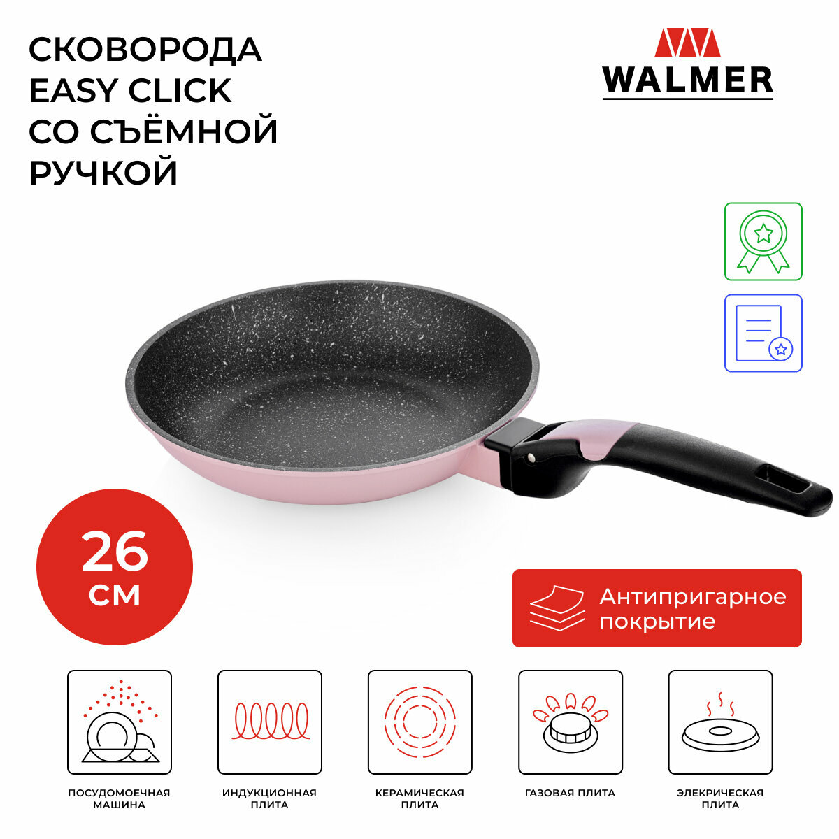 Сковорода Walmer Easy Click со съемной ручкой, 26 см, цвет розовый информация: