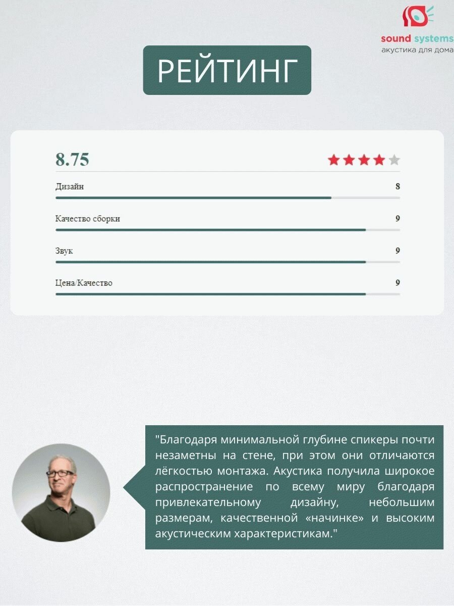 | Тип акустической системы | центральный канал / Настенная акустика |