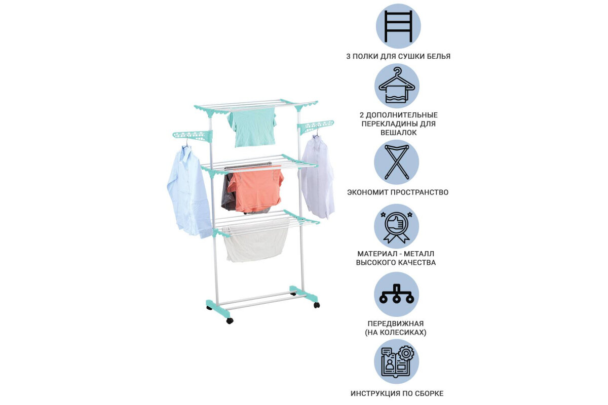 Сушилка для белья HOMSU напольная 165 х 80 см, HOM-1279, серебристый/голубой