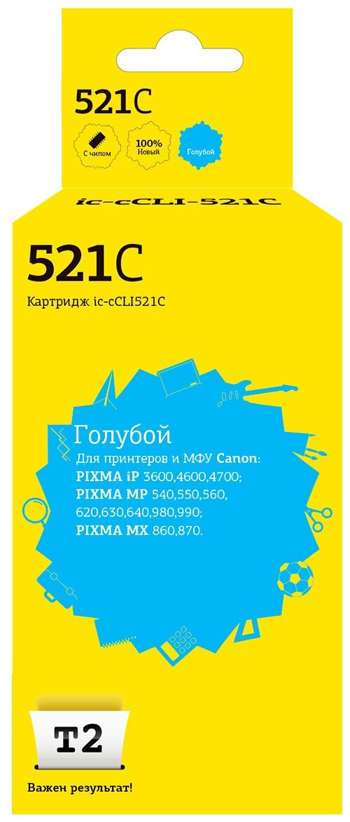 Отзывы на T2 Расходные материалы CLI-521C IC-CCLI-521C Картридж для Canon PIXMA iP3600 4600 4700 MP540 620 630 980, голубой, с чипом