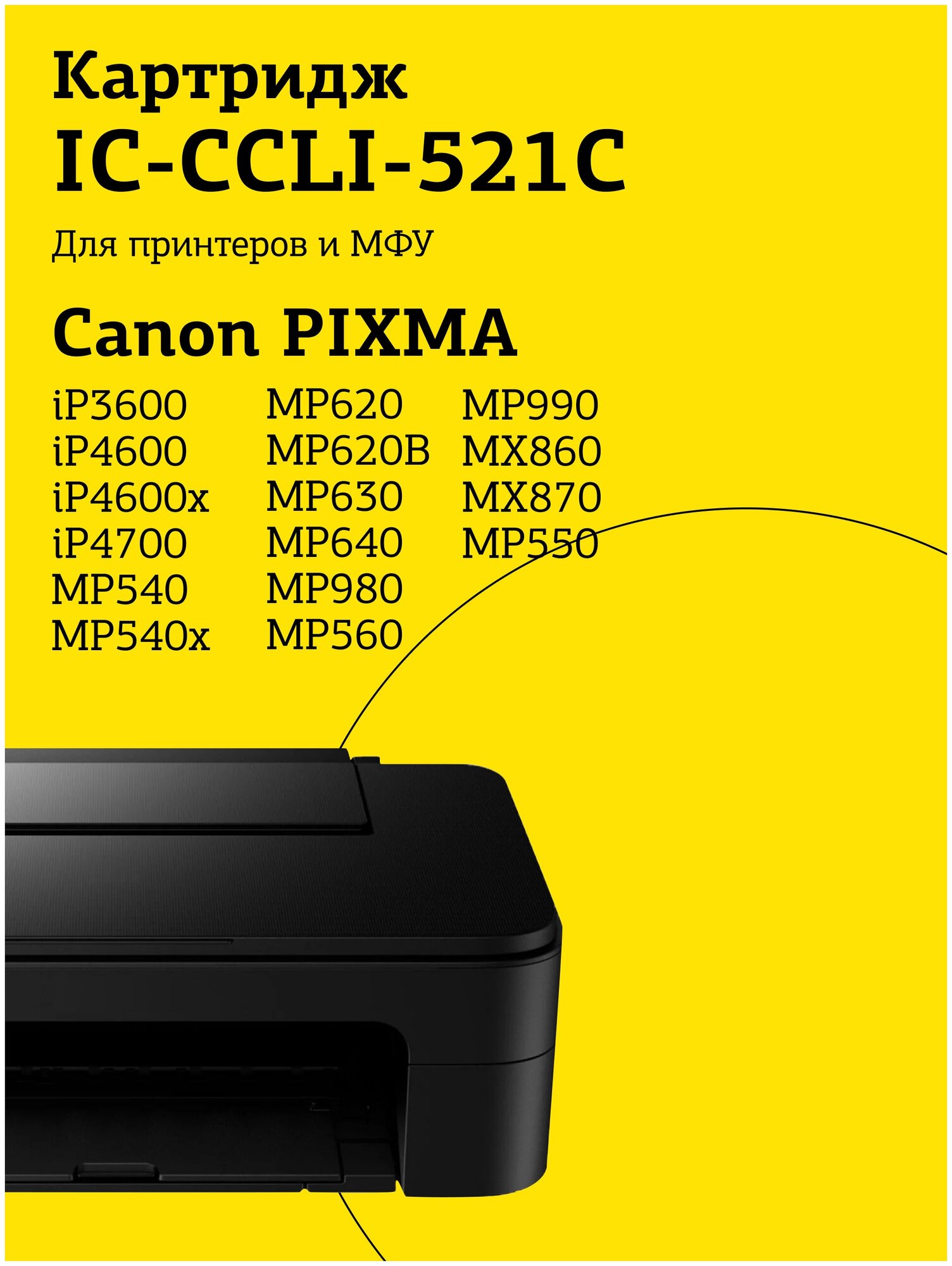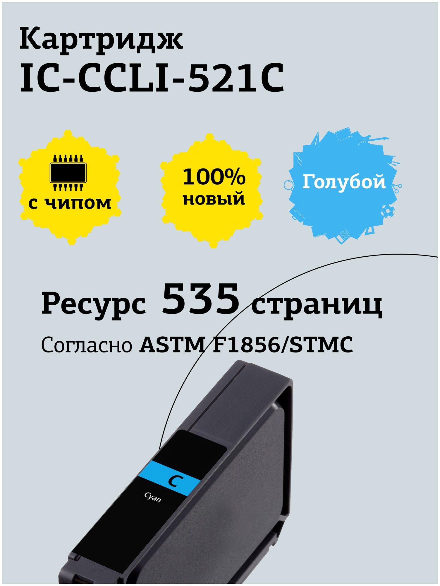 IC-CCLI-521C Картридж для Canon PIXMA iP3600, 4600, 4700, MP540, 620, 630, 980, голубой, с чипом