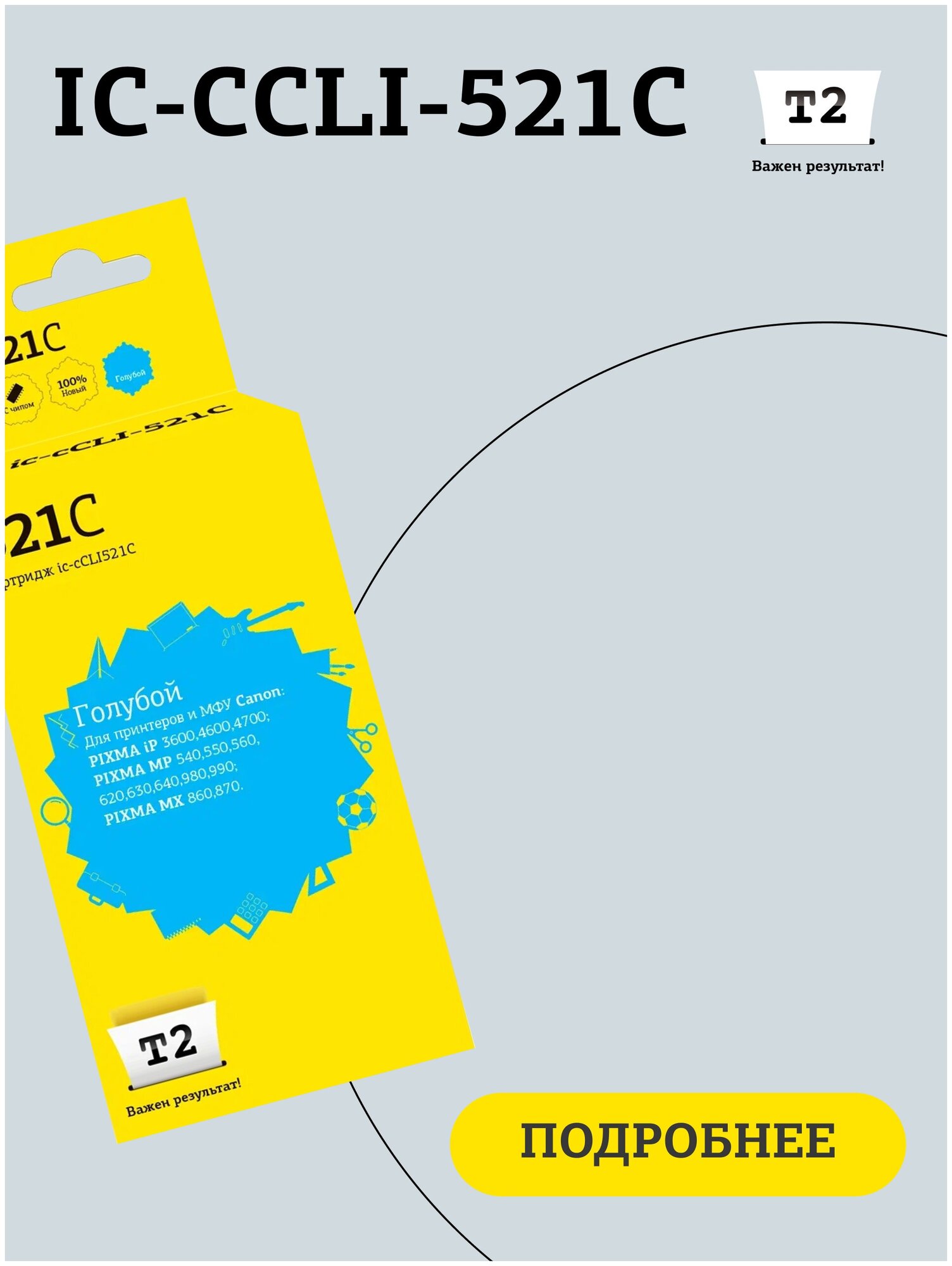 10 цен на T2 Расходные материалы CLI-521C IC-CCLI-521C Картридж для Canon PIXMA iP3600 4600 4700 MP540 620 630 980, голубой, с чипом