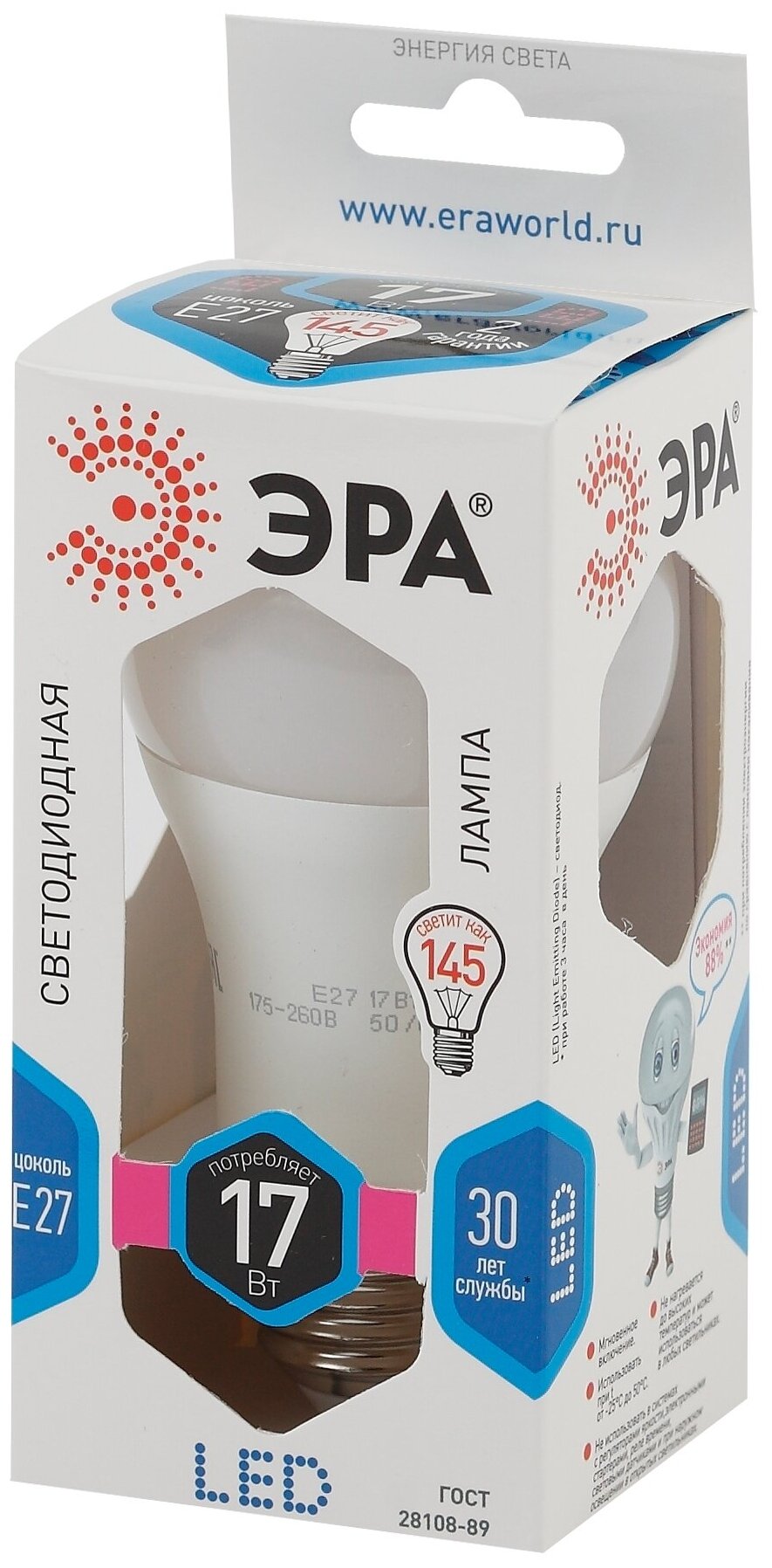 Светодиодная лампа ЭРА LED A60-17W-840-E27 10/100/1200 информация: