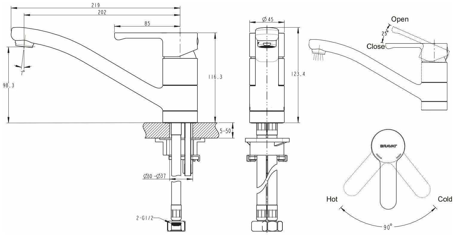 Смеситель для кухни STREAM-D Bravat с невысоким длинным носиком изливом F737163C-1 информация: