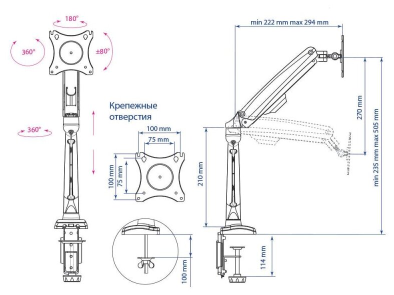 Отзывы на Кронштейн для мониторов Kromax OFFICE-8 black, для LCD/LED мониторов 15"-32", нагрузка 2-8 кг, насто
