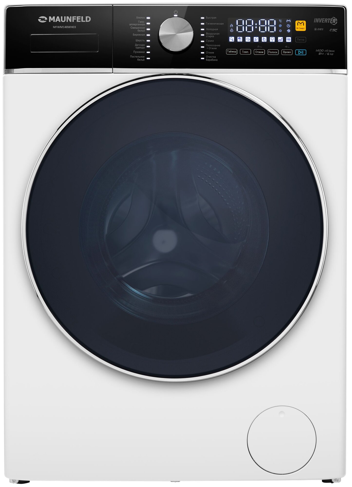 Стиральная машина с инвертором MAUNFELD MFWM148WH03, 8 кг, 1400 об/мин, М-старт, LED дисплей, подсветка барабана 49 990 ₽