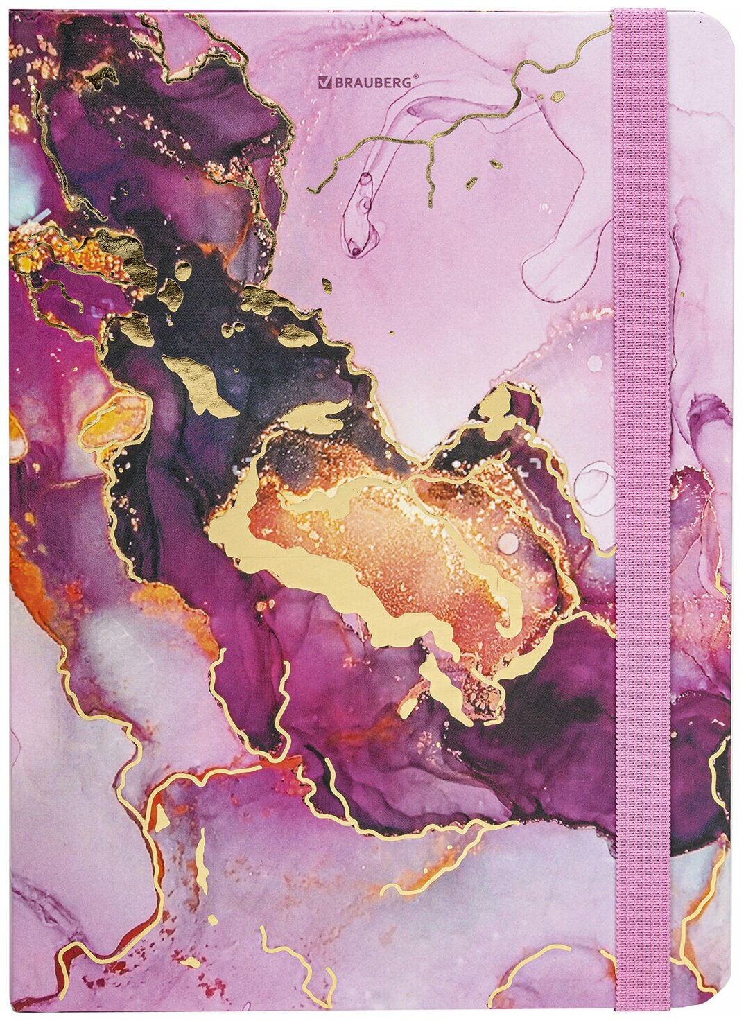 Блокнот с резинкой в клетку 96 л., А5 (145х203 мм), твердая обложка с фольгой, BRAUBERG, "Мрамор", 113731, 113731 530 ₽