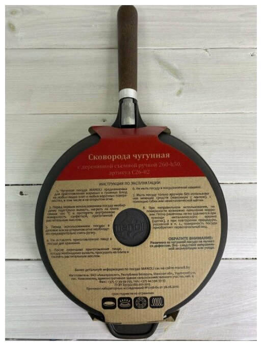 Сковорода чугунная 260х50мм Manoli со съемной деревянной ручкой из массива(дуб, ясень), С26-02 информация: