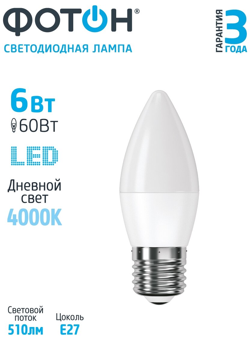 Светодиодная лампа Фотон B35 6Вт 4000K E27 информация: