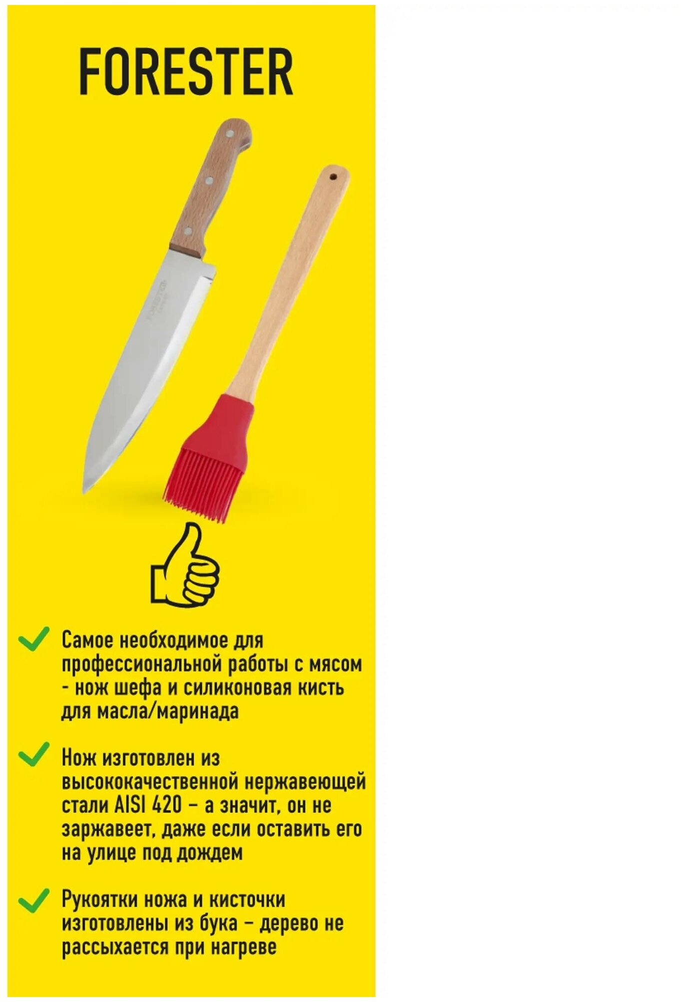 Набор для работы с мясом Forester нож шефа 33 см, силиконовая кисть