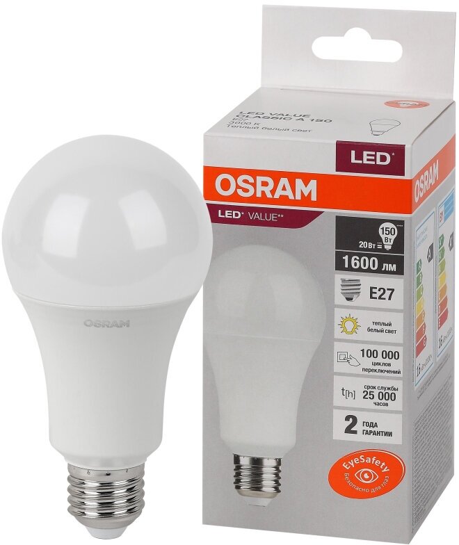 Отзывы на Лампа светодиодная OSRAM LED Value A, 1600лм, 20Вт (замена 150Вт), 3000К