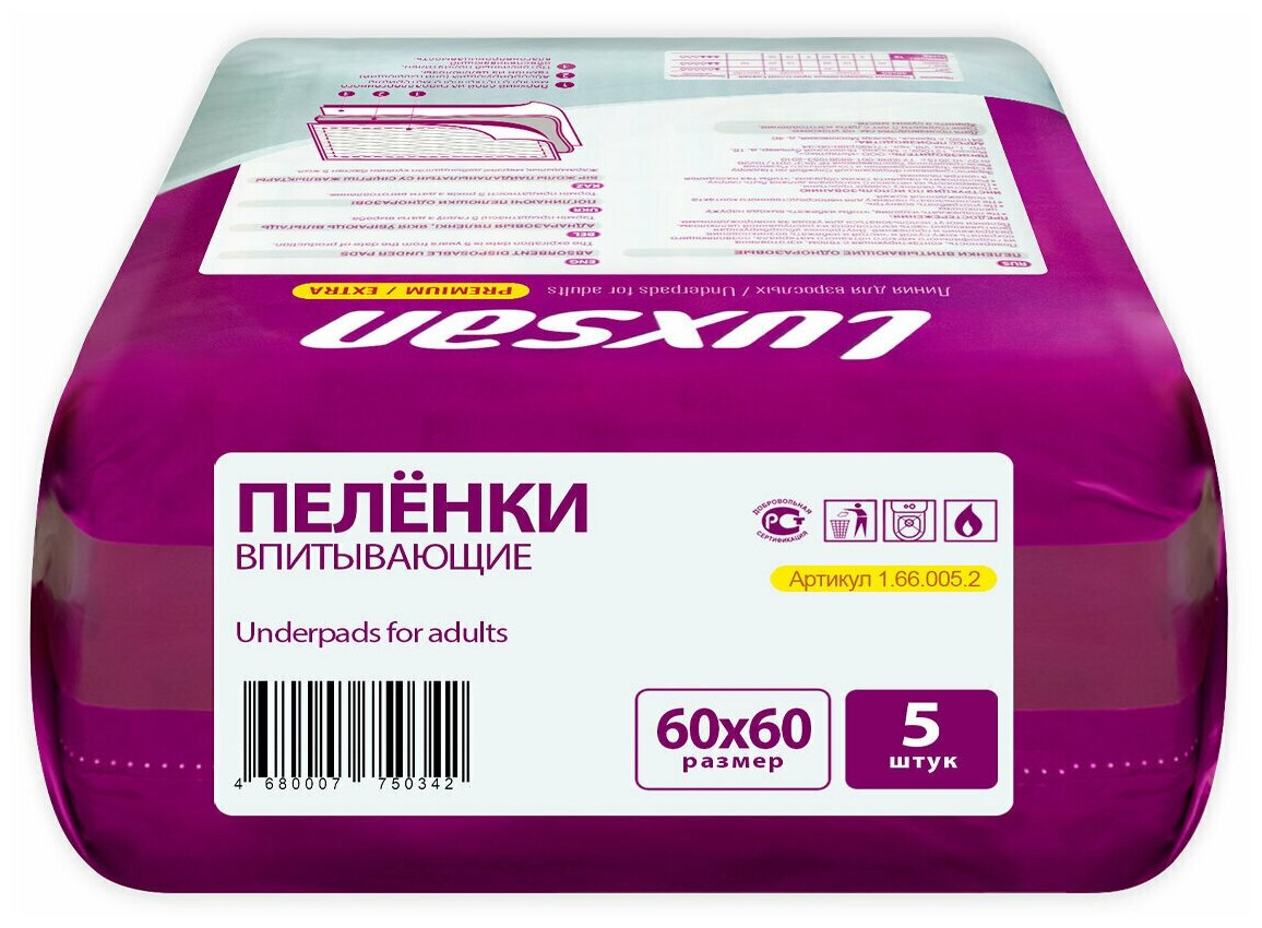 Пеленки Luxsan Premium Extra, 60 х 60 см, 5 шт. информация: