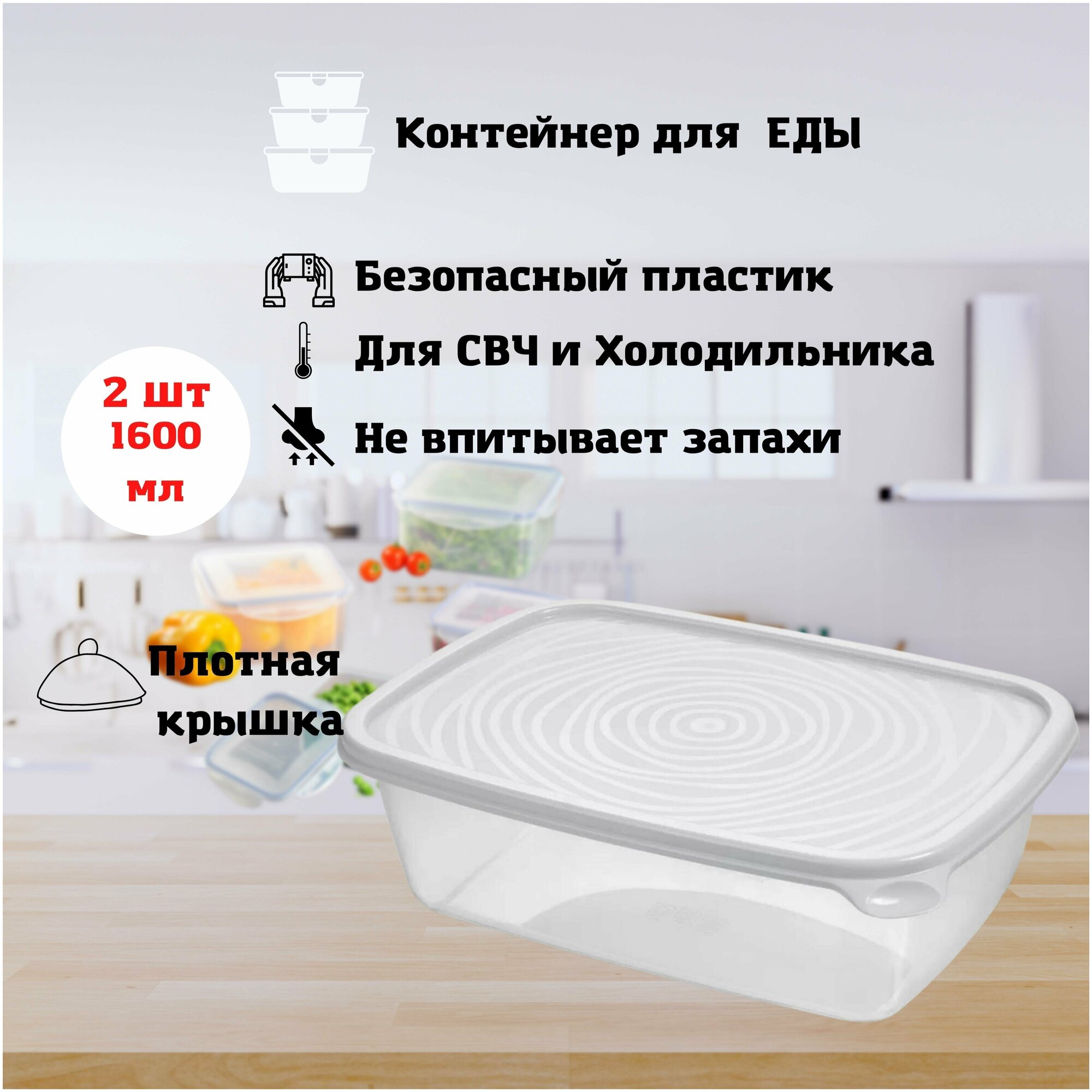 Контейнер для продуктов пластмассовый "Каскад" 2,2л, 27х38х31см, подходит для СВЧ (Россия)