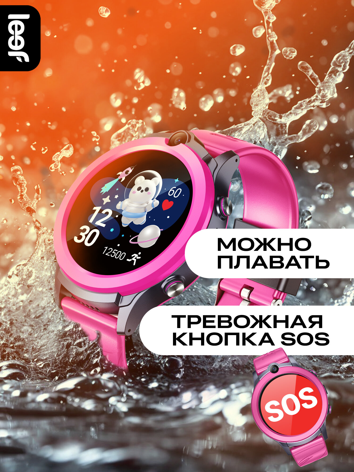 Детские смарт-часы Leef Vega, 4G, GPS, геозоны, видеозвонок, SOS, IP67, 700мАч, розово/серые