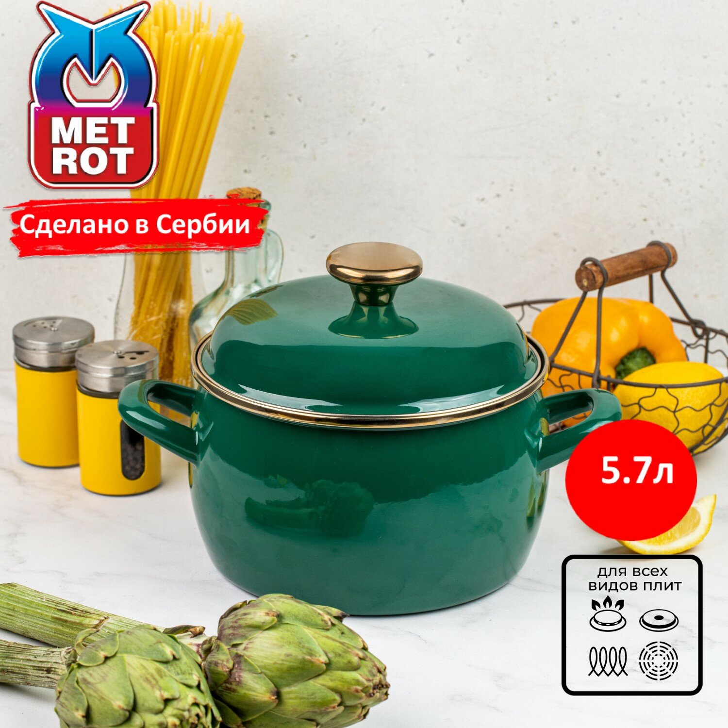 Кастрюля 5,7л 22см METROT SOLO Изумруд глубокая с металлической крышкой эмаль