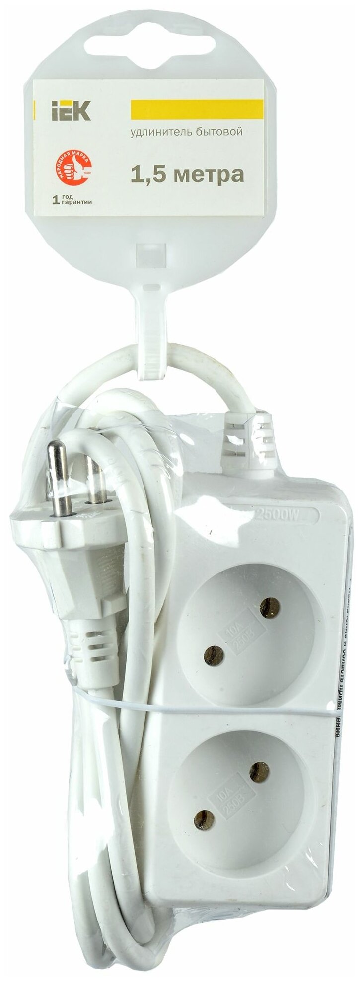 10 цен на Удлинитель У2 2 места 2P/1,5м 2х0,75мм2 10А/250В IEK