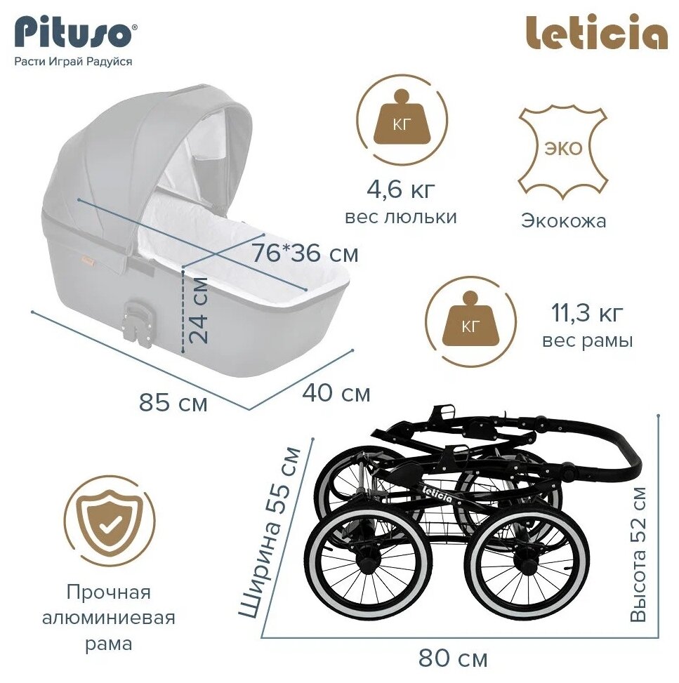 Коляска Pituso Leticia Classic Кожа Grey (коляска 14d)