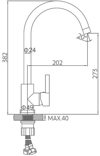 Cмеситель для кухни A4490F-3, однорычажный, высокий излив, латунь, черный