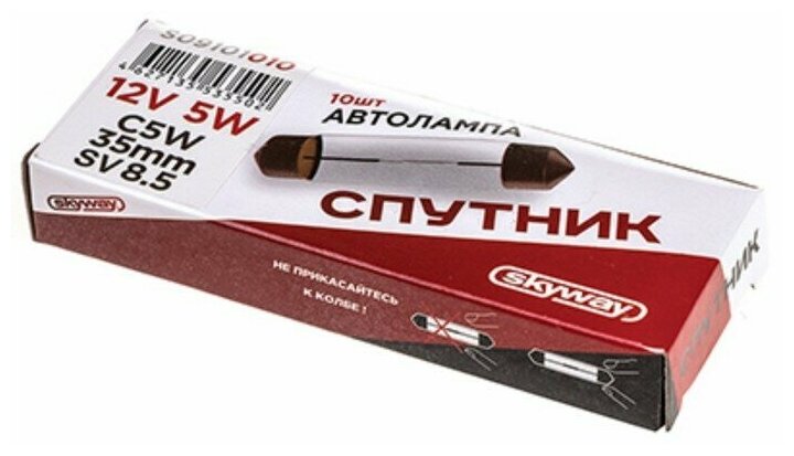 Лампа автомобильная C5W, 12В 5Вт, с цоколем 35 мм, sv8.5-8, Спутник, Skyway , S09101010 (10 шт)