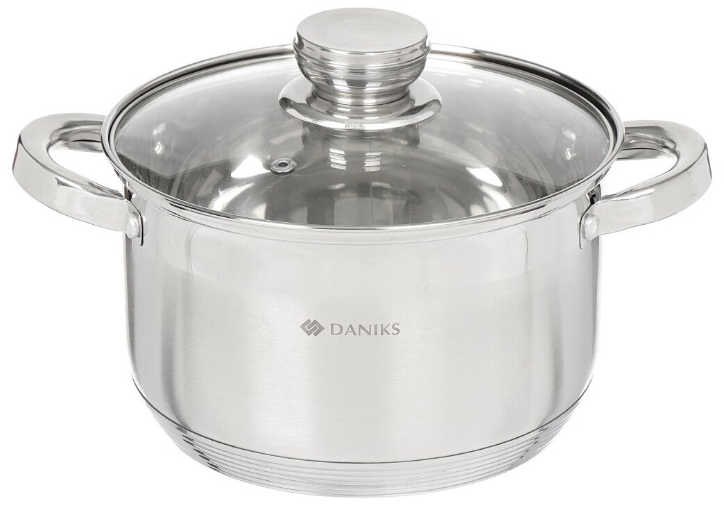 Кастрюля Daniks Стандарт-PR SD-20-2 нерж 3.9 л крышка стекло индукц