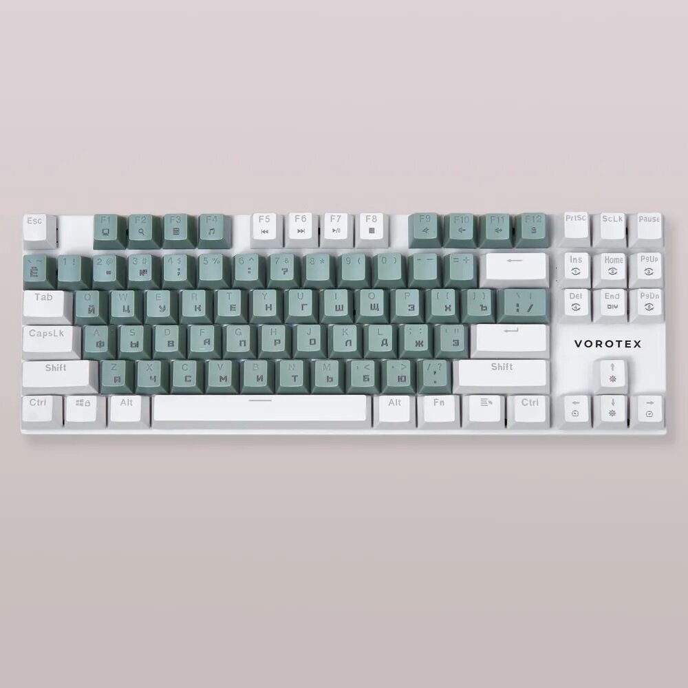 Игровая клавиатура VOROTEX K87S Blue Switch, белый/серый, кириллица+QWERTY