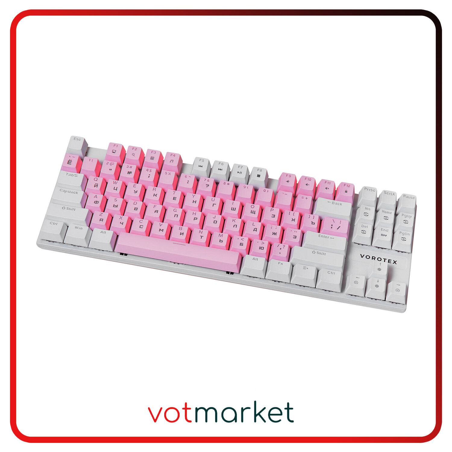 Игровая клавиатура VOROTEX K87S Red Switch, розовый/белый, русская информация: