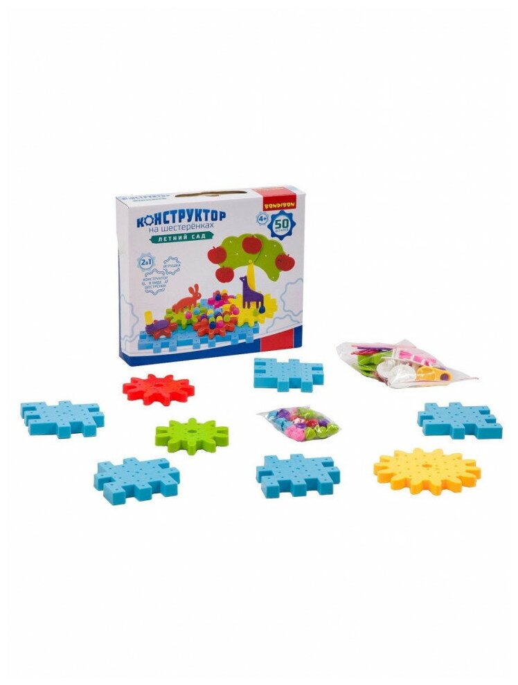 Логические, развивающие игры и игрушки Bondibon Конструктор на шестеренках «летний САД» 50 дет., BOX