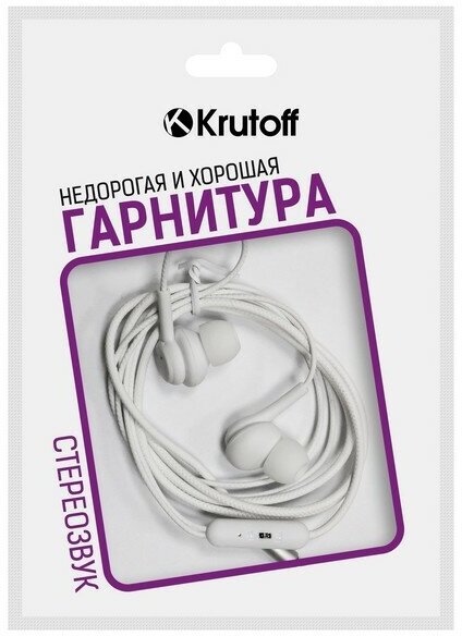 Наушники с микрофоном Krutoff HF-T67 белые (пакет) информация: