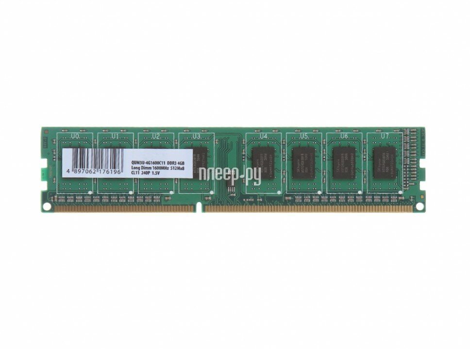 Память DDR3 4Gb 1600MHz Qumo PC3-12800 QUM3U-4G1600C11 512x8chips Oem/rtl .