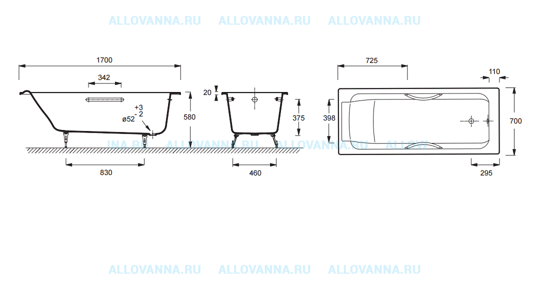 Ванна чугунная Jacob Delafon Parallel 170х70 информация: