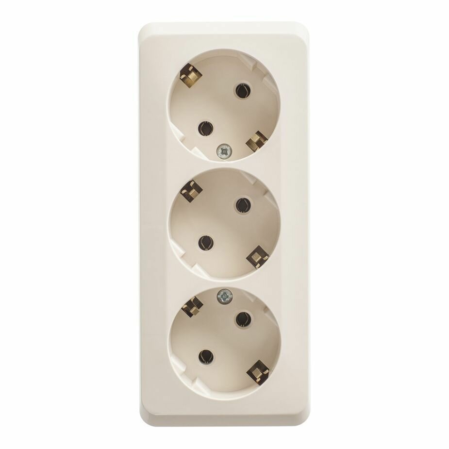 10 цен на Розетка тройная PA16-011K открытая установка кремовая с заземлением IP20