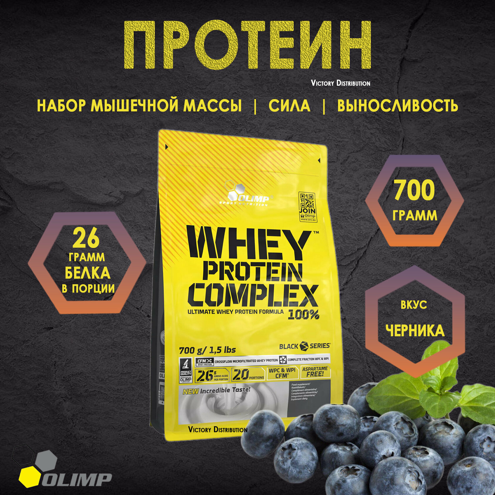 Протеин Olimp 100% Whey Protein Complex, Черника, 700 г информация: