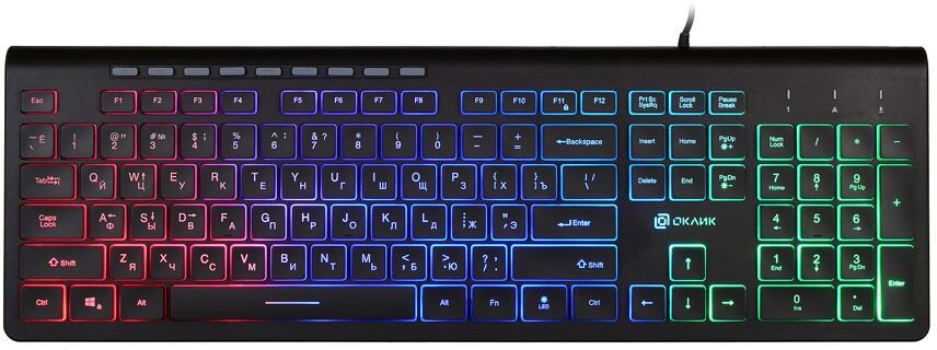 Клавиатура Оклик 490ML черный USB slim Multimedia LED