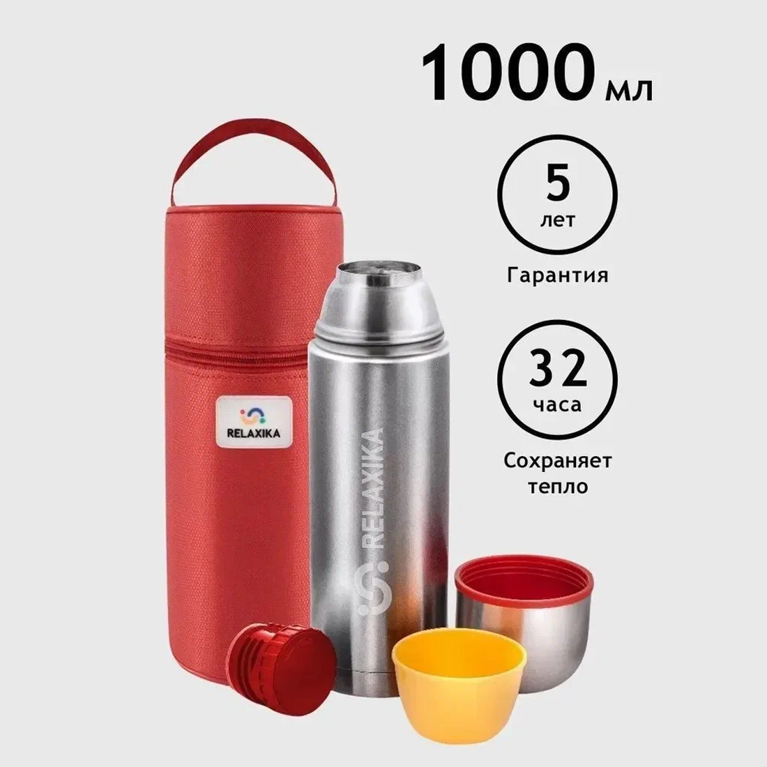 Термос Relaxika 102, стальной, 1 литр, термочехол