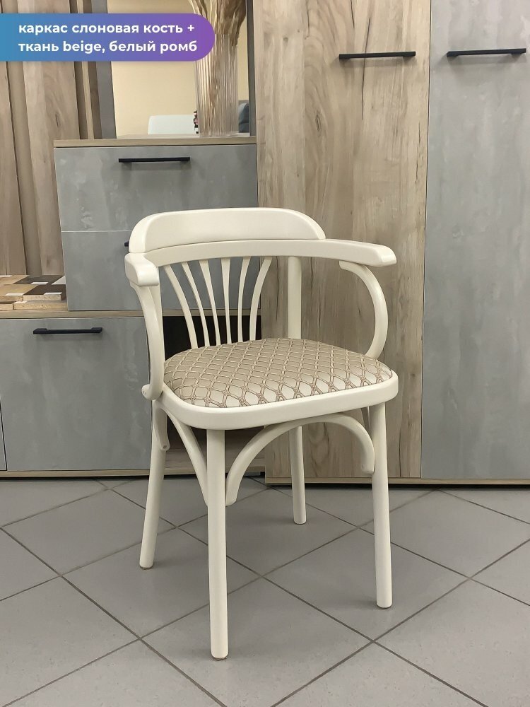 Венский мягкий Стул (каркас слоновая кость + ткань beige, белый ромб) информация: