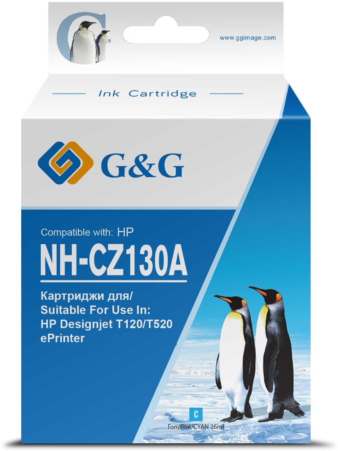 Картридж для струйного принтера G&G GG-CZ130A, голубой, совместимый с HP T120/T520