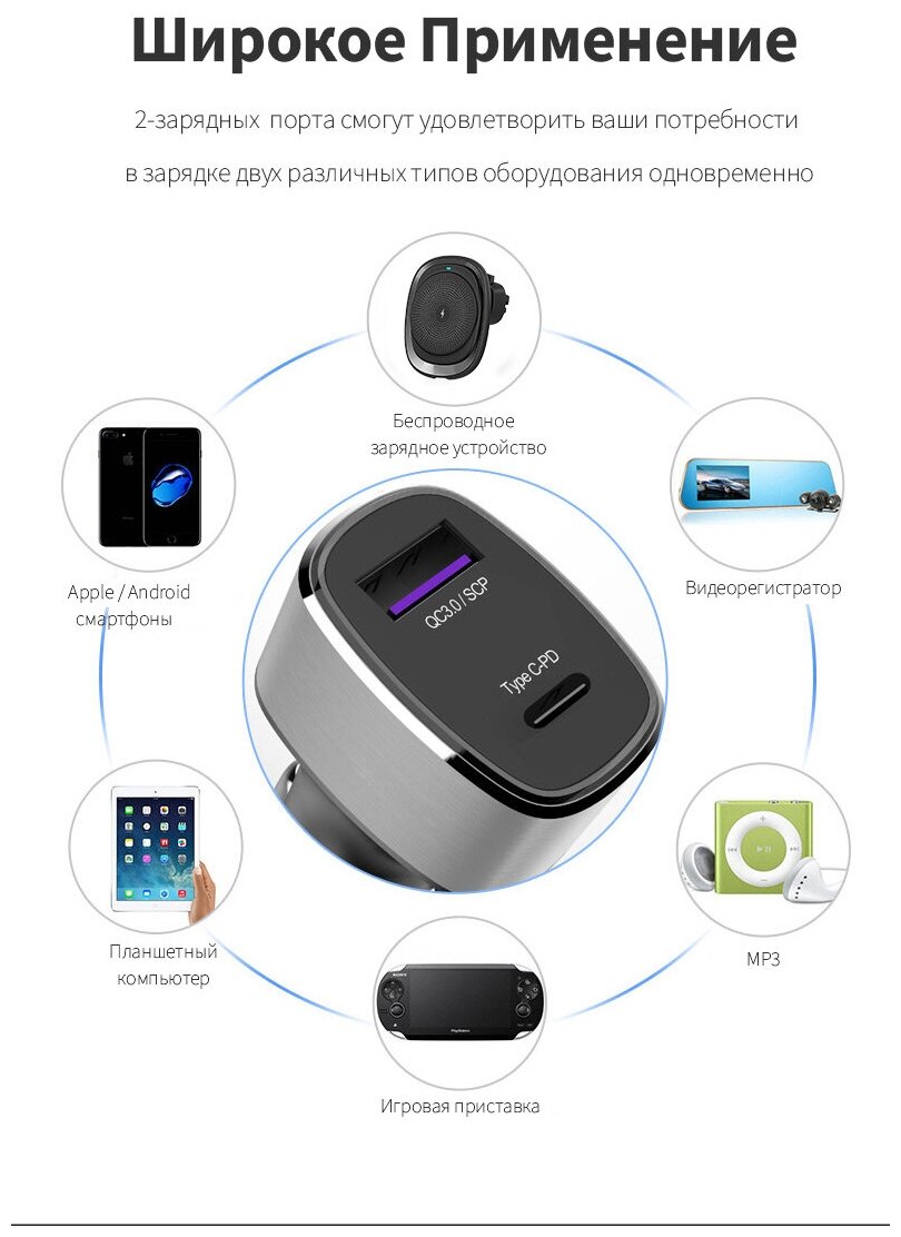 Отзывы на Автомобильное зарядное устройство PD3.0 27W + QC3.0 36W для быстрой зарядки IPhone, Android / подсветка