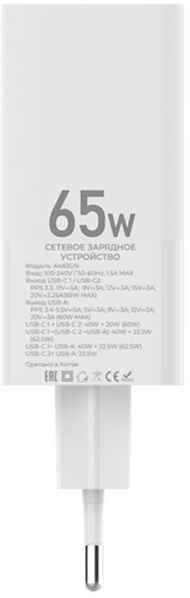 Сетевое зарядное устройство Maxvi A483GN, 65W с поддержкой быстрой зарядки QC 4.0, PD 3.0 информация: