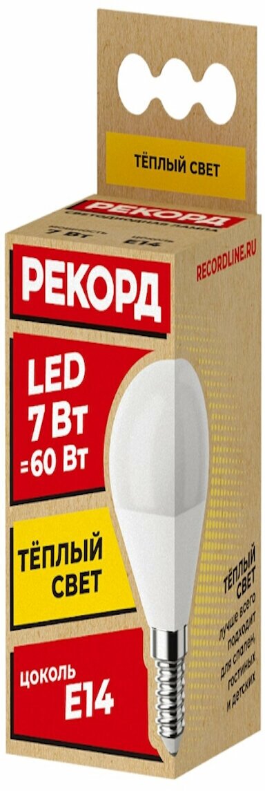 Рекорд Лампа светодиодная LED P45 7W Е14 3000К 23883 информация: