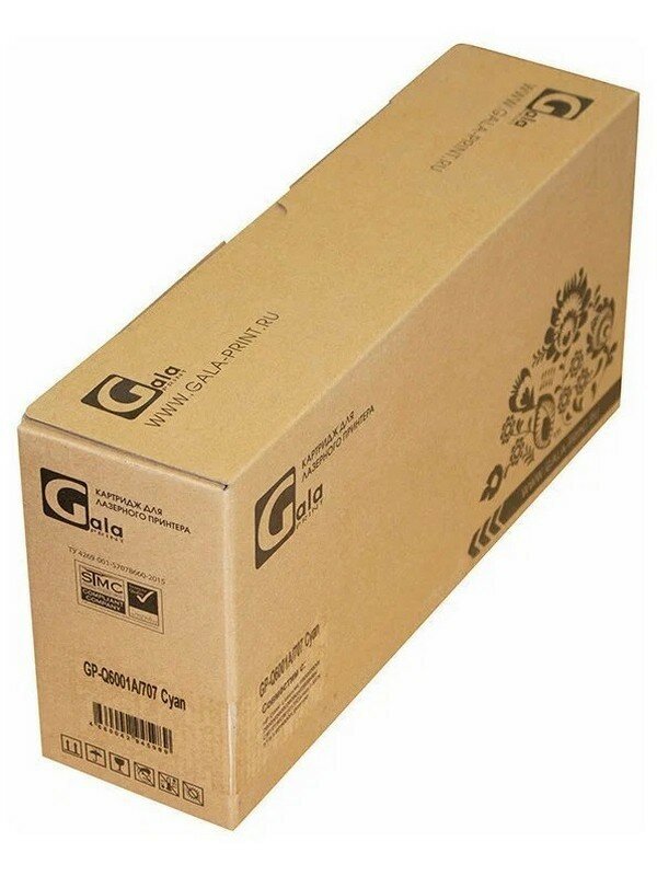 Картридж GalaPrint Q6001A/707 (№124A) для принтеров HP Color LaserJet 1600/2600/2600n/2605/2605dn/2605dtn/CM1015/CM1017/Canon i-SENSYS LBP5000/LBP5100 Cyan 2000 копий совместимый