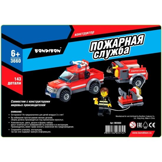 Пластиковый конструктор Bondibon Пожарная служба Машина с прицепом информация: