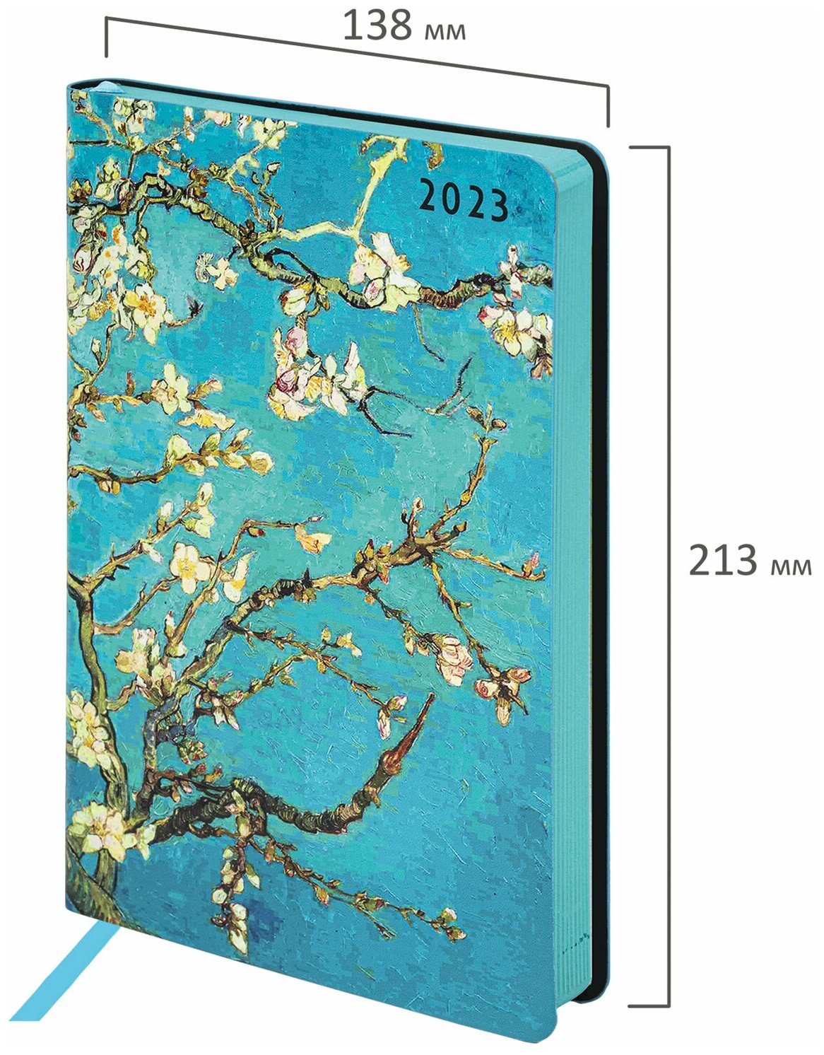 Ежедневник датированный Brauberg 2023 а5 138x213 мм под кожу, гибкий цветущий миндаль (114124) информация: