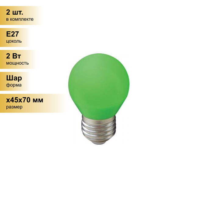 Отзывы на Светодиодная LED лампа Ecola globe LED color 2,0W G45 220V E27 Green шар Зеленый матовая колба 70x45 K7CG20ELB