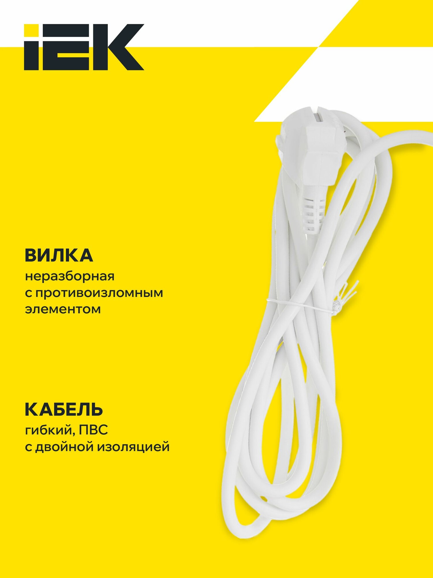 Удлинитель IEK WYP10-16-02-05-Z-N, 2 розетки, с/з, 16А / 3500 Вт