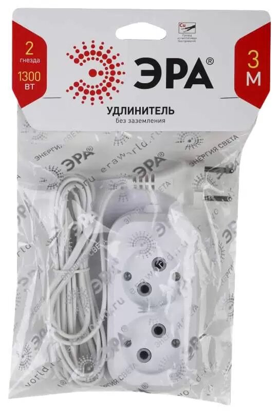 Удлинитель 2х3м без заземл. 6А IP20 UX-2-3m ШВВП 2х0.75 Б0038558 Эра информация:
