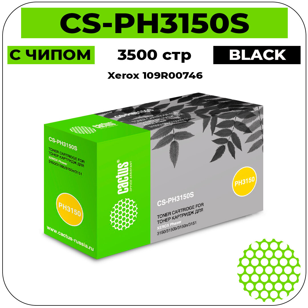 Картридж лазерный Cactus CS-PH3150S 109R00746 черный (3500стр.) для Xerox Phaser 3150/3150b/3150n/3151 информация: