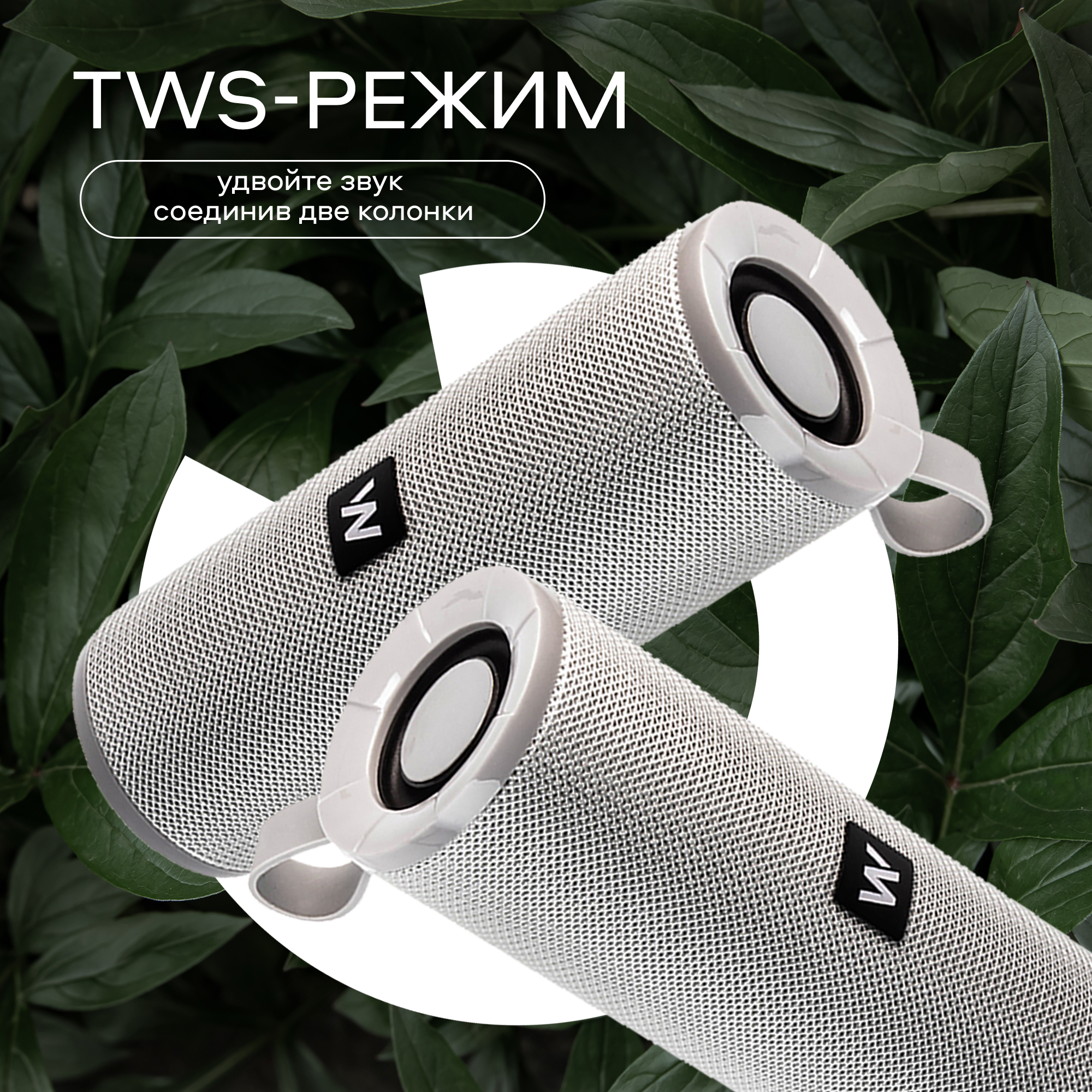 10 цен на Портативная колонка bluetooth 5.0, WALKER, WSP-110, 2 динамика по 5Вт, блютуз колонка беспроводная, колонка музыкальная как jbl акустика, серая