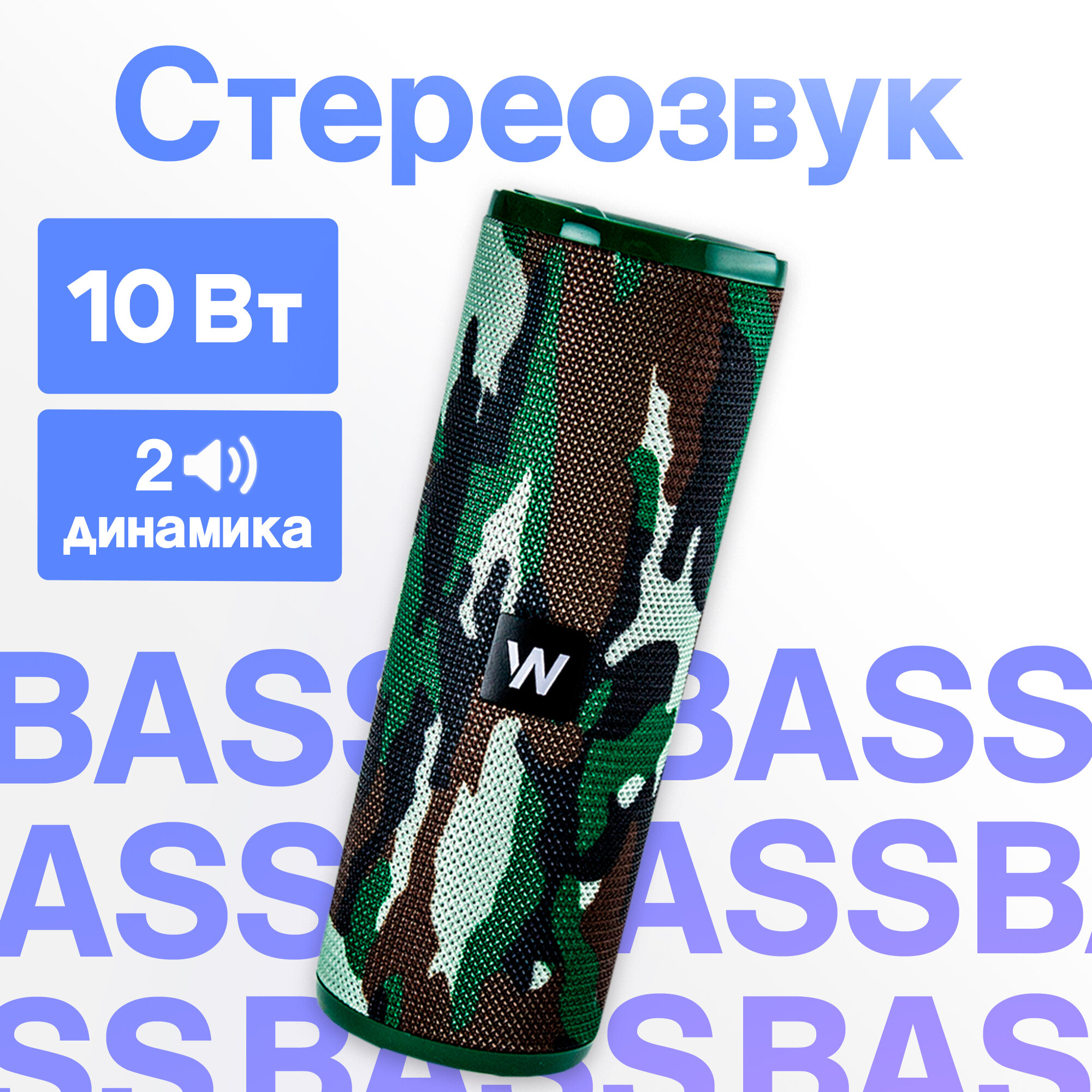 10 цен на Портативная колонка bluetooth 5.0, WALKER, WSP-110, 2 динамика по 5Вт, блютуз колонка беспроводная, колонка музыкальная как jbl акустика, камуфляж