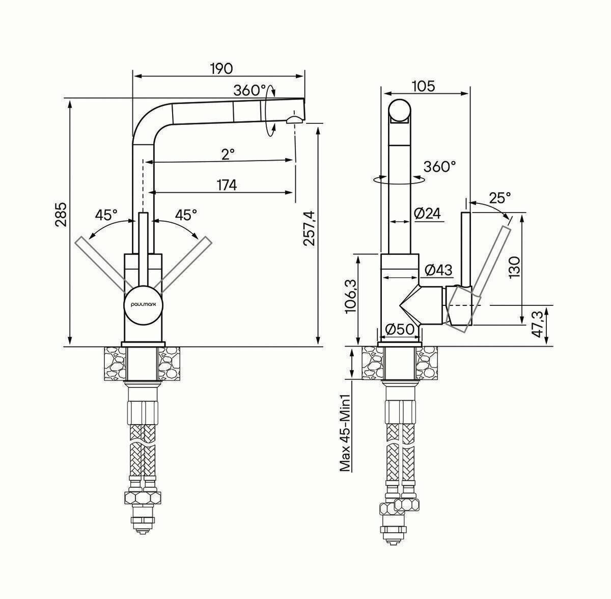Смесители для кухни Paulmark HONNER, смеситель, вороненая сталь