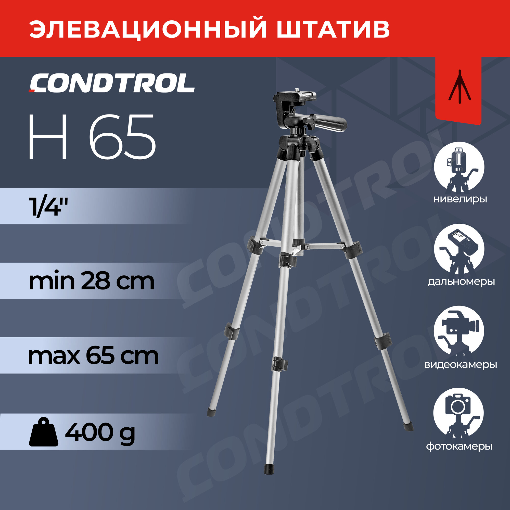 Штатив CONDTROL H65 с элевационной головкой профессиональный для нивелиров, дальномеров, фото и видео приборов 1 090 ₽